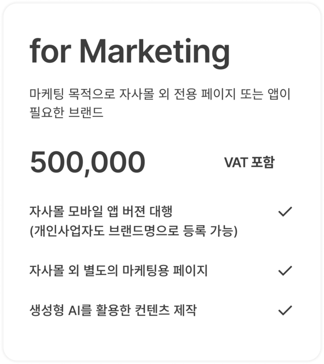 마케팅 기획은 브랜드가 하고 실제 페이지 작업만 진행하기 때문에 가격을 낮출 수 있습니다.